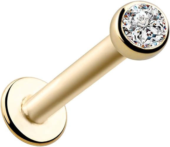 Ritastephens 14k Solid Gold Yellow Labret Stud Chin Jewelry 14 Gauge