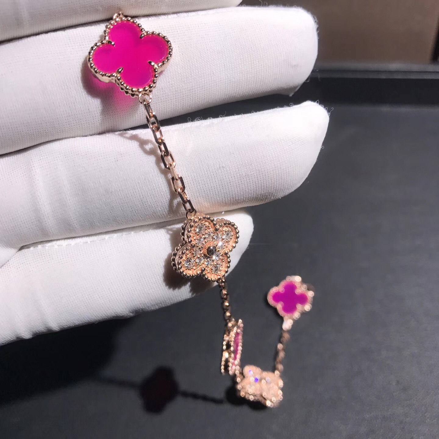 Custom Van Cleef Arpels Vintage Alhambra Bracelet 5 Motifs Rose