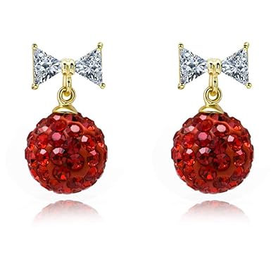 Amazon Com Women S Jewelry Earrings Red Ball Crystal Dangle Drop