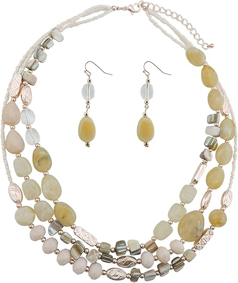 Amazon Com Coiris Multi Layer Shell Beaded Statement Necklace For