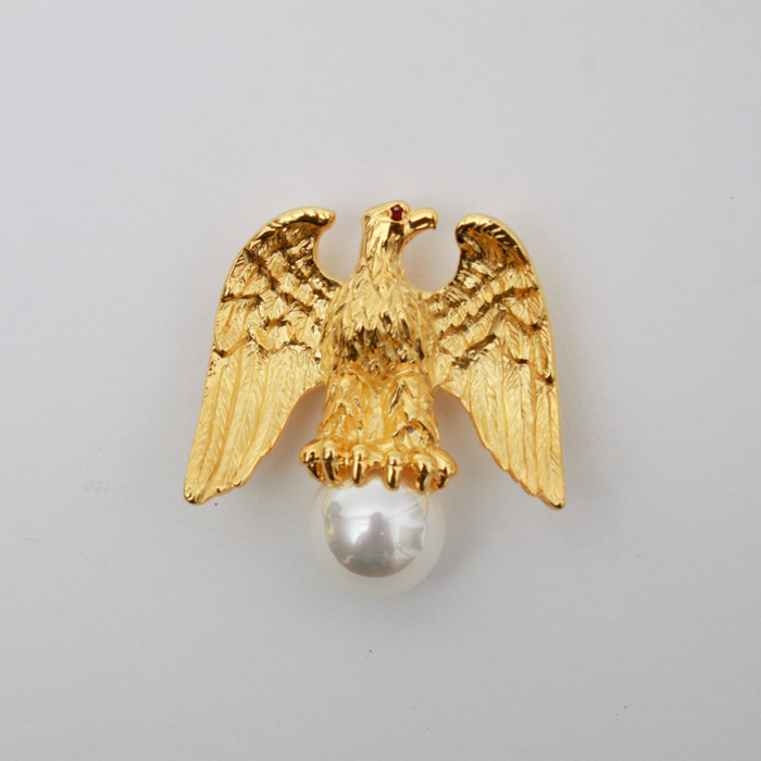 Best Ann Hand Gold Liberty Eagle Pin W Pearl Ruby Eye For Sale In