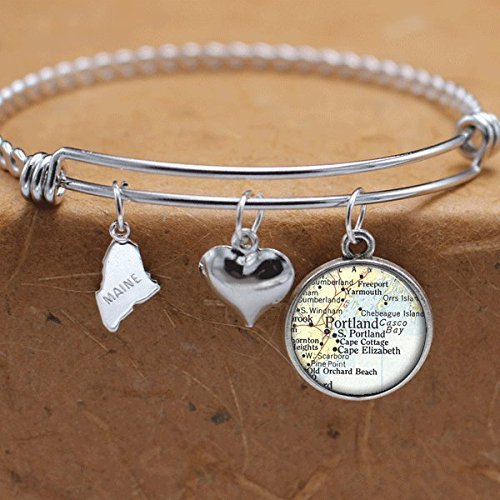 Amazon Com Map Charm Bracelet Portland Me State Of Maine Handmade
