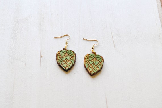 Beer Hops Dangle Earrings Beer Jewelry Wood Painted Etsy