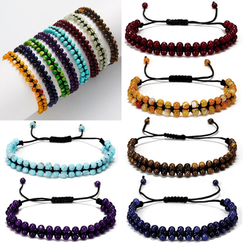Men Women 7 Chakra Natural Stone 4mm Beads Braided Bracelets