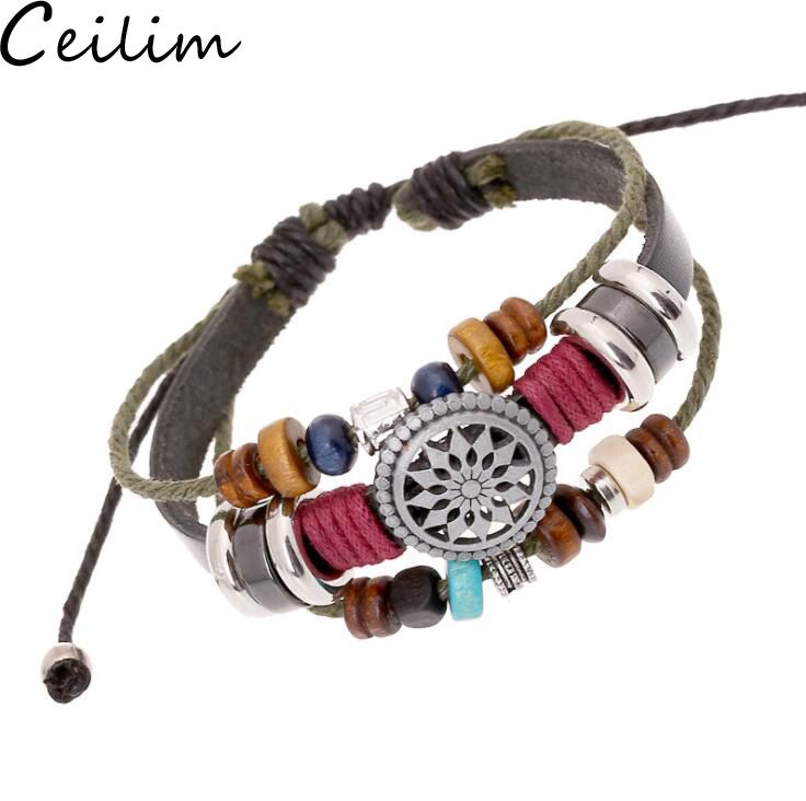 2020 Trendy Multilayer Leather Bracelet Sun Charms Beads Braided