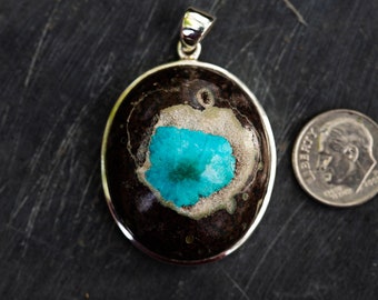 Cavansite Fr India Druzy Crystal Pendant Turquoise Blue Aqua