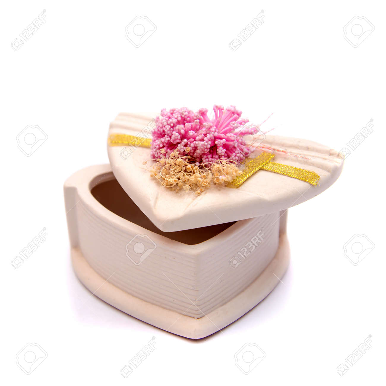 Small Ceramic Jewelry Box Isolated Over A White Background