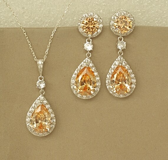 Champagne Jewelry Set Topaz Jewelry Set Champagne Wedding Etsy