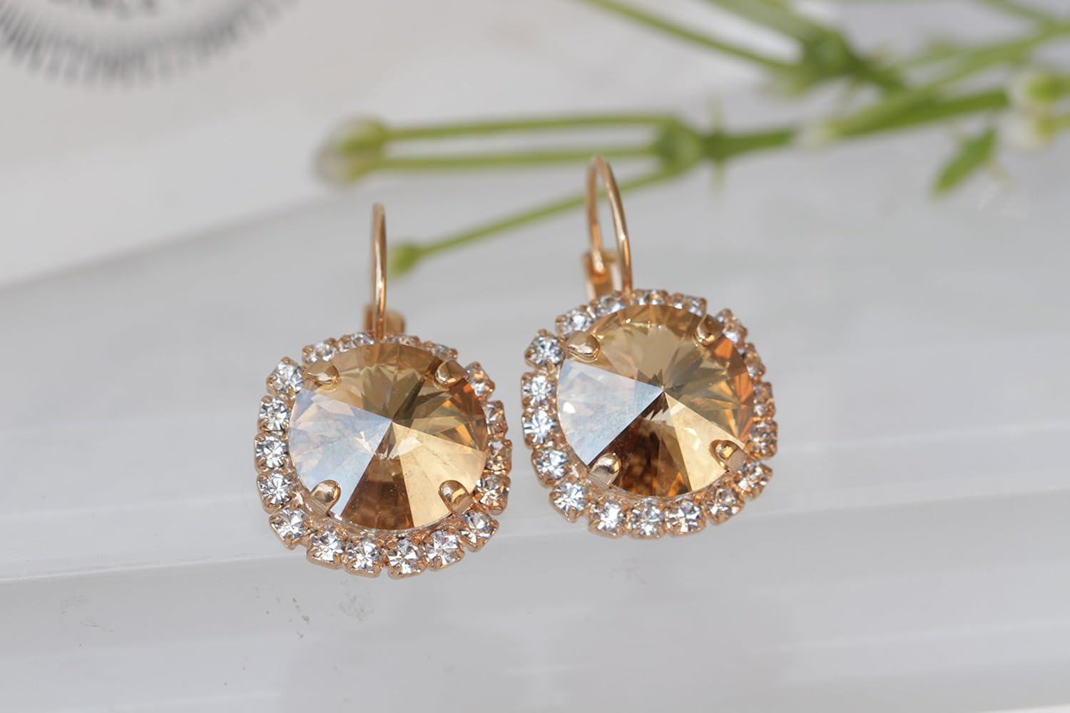Bridal Champagne Jewelry Set Swarovski Large Golden Shadow Etsy