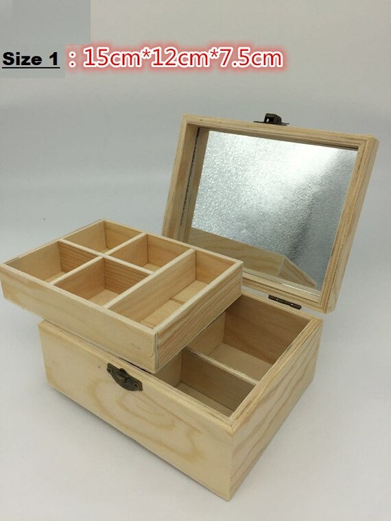 2 Tiers Plain Unpainted Wooden Jewelry Box Organizer Storage
