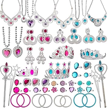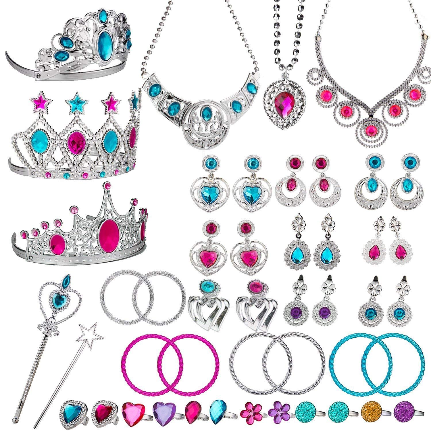 Amazons choice for dress up jewelry for toddlers elesa miracle little girl bag beauty set plush handbag flower shaped clip on earrings necklace and bracelet set blue 44 out of 5 stars 145. Smitco kids costume jewelry set for little girls and toddlers wooden beaded toy necklace bracelet and ring for play pretend or dress up non toxic and safe for children ages 3 to 8 by smitco. 2 fairy mermaid princess cos.
