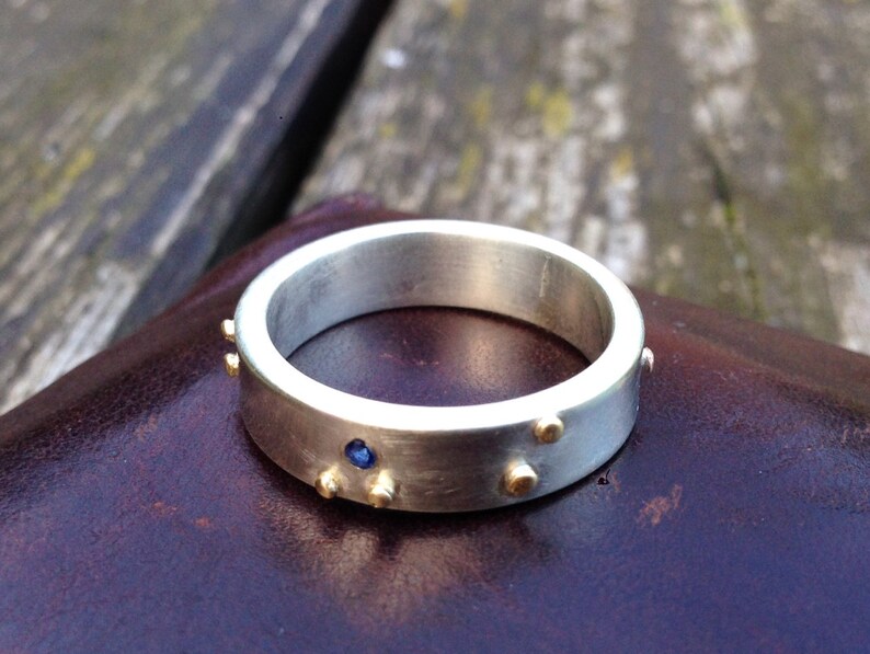 Solar System Ring Electrum Green Gold 18k Gold Sapphire Etsy