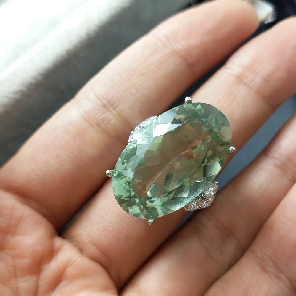 Flzb Big Natural 13 5ct Green Amethyst Ring Oval Cut 12 16