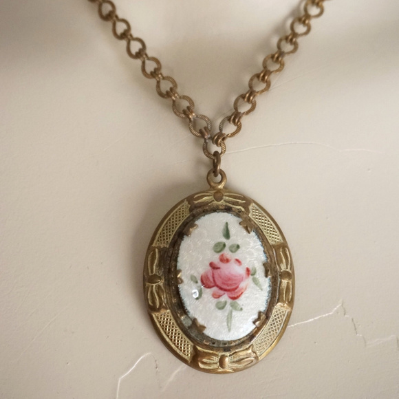 Vintage Jewelry Art Nouveau Guilloche Enamel Locket Necklace