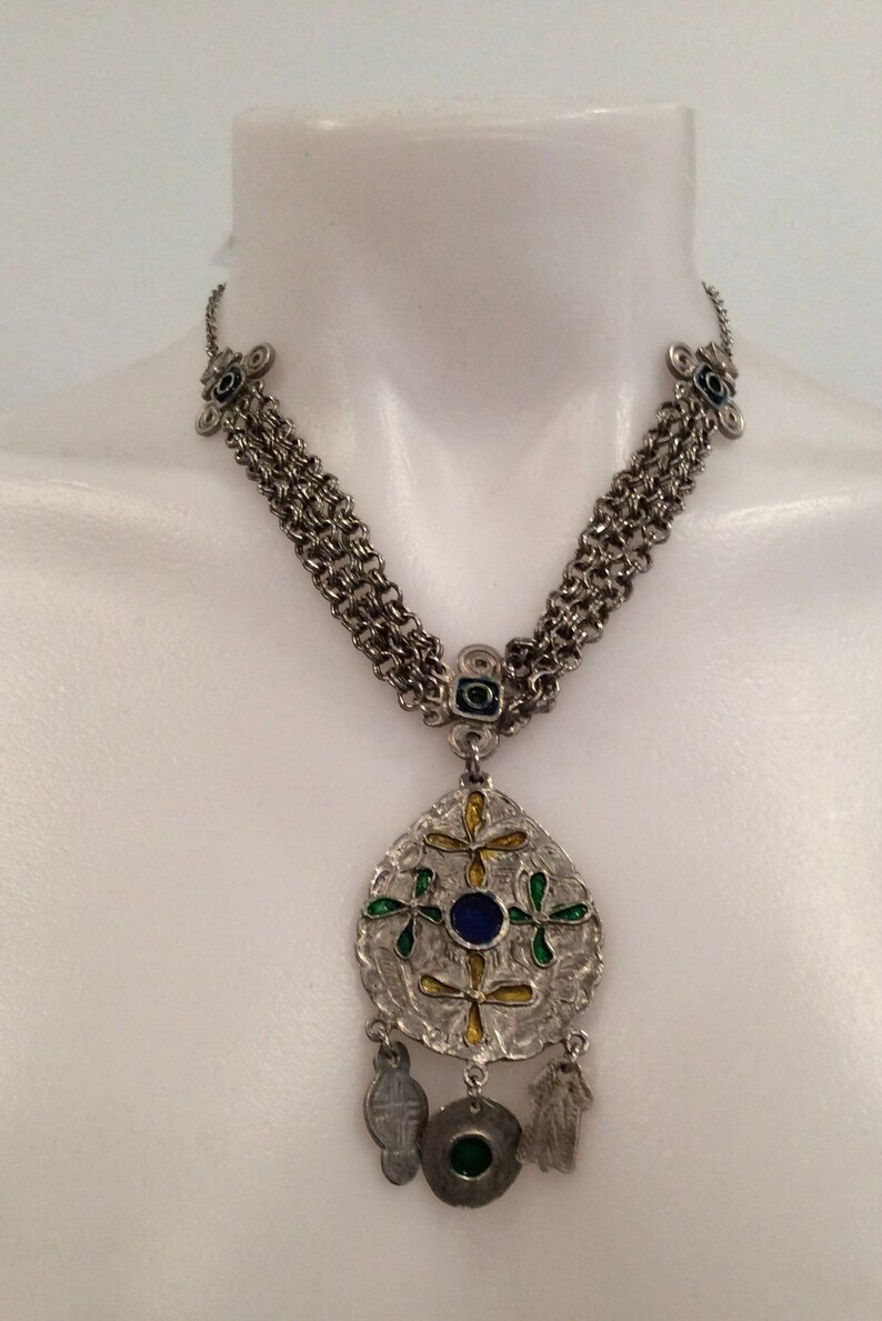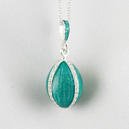 Amazon Com Necklace Teal Pendant Guilloche Enamel Over 925
