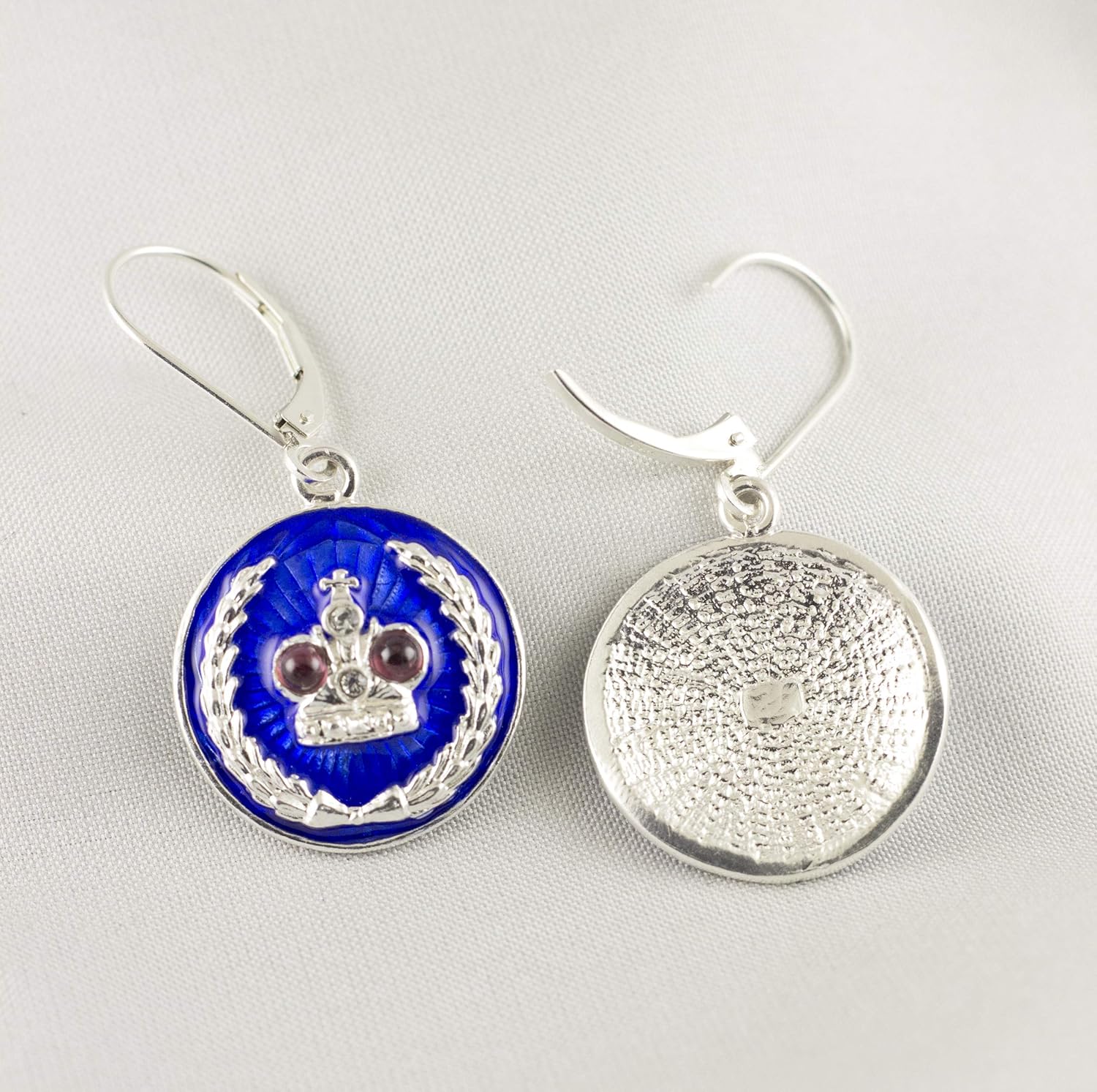 Amazon Com Earrings Royal Crown Blue Guilloche Enamel 925