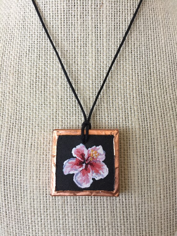Painted Hibiscus Pendant Hawaiian Flower Necklace Tropical Etsy