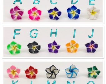 Hawaiian Flower Earrings Purple Orange Yellow Luau Dangles