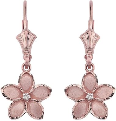 Amazon Com Dainty 14k Rose Gold Hawaiian Flower Plumeria Diamond