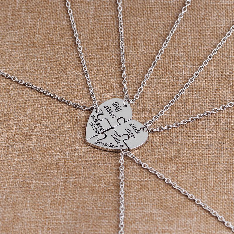 Wholesale Big Middle Little Sister Heart Pendant Necklace Letter