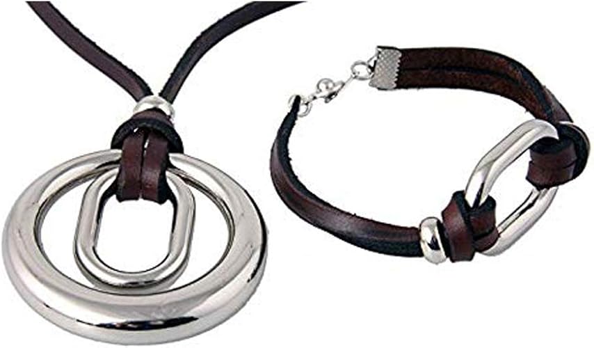 Amazon Com Jv Leather Necklace Bracelet Set Stainless Steel
