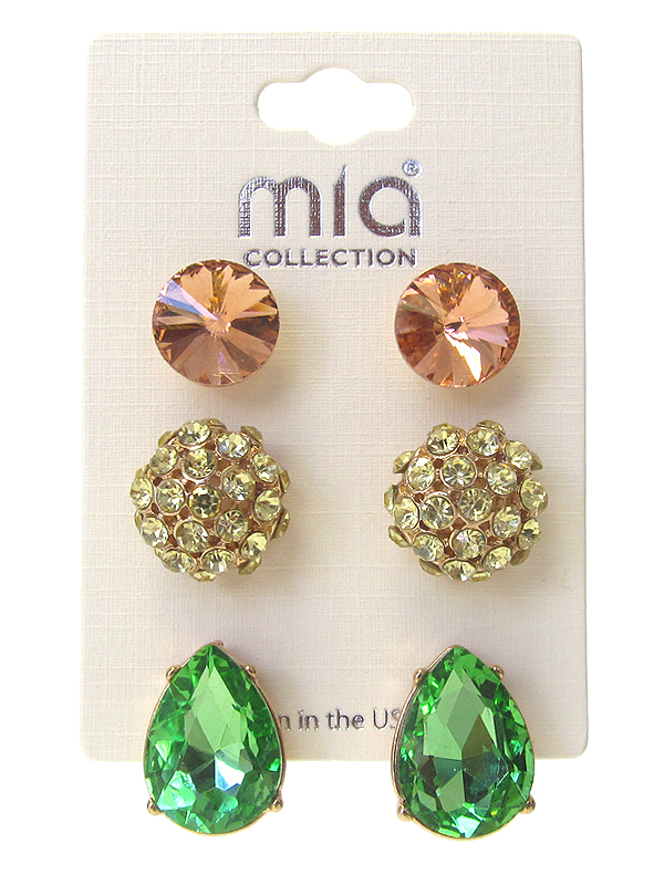 Wholesale Mixed Stone 3 Pair Earring Set 442086