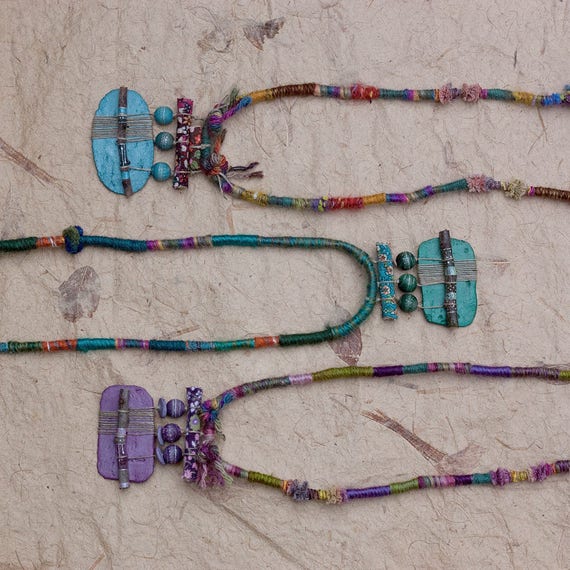 Rustic Boho Necklace Statement Mixed Media Jewelry Extra Etsy