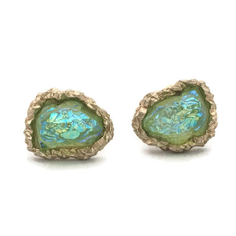 Mcm Green Lava Rock Cufflinks Moon Rock Green Freeform Oval Etsy