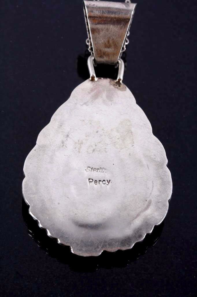 A huge estate signed percy spencer sterling silver necklace. This exquisite sterling silver natural bear claw bracelet is designed and handmade by percy spencer navajo. The large drop measures 1 34 of an inch by 2 12 inches are freely hangs from fantastic 3 inch leaves.