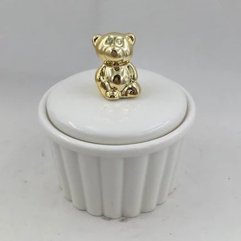 Hot White Glazed Ceramic Personalized Jewelry Box With Golden Bear