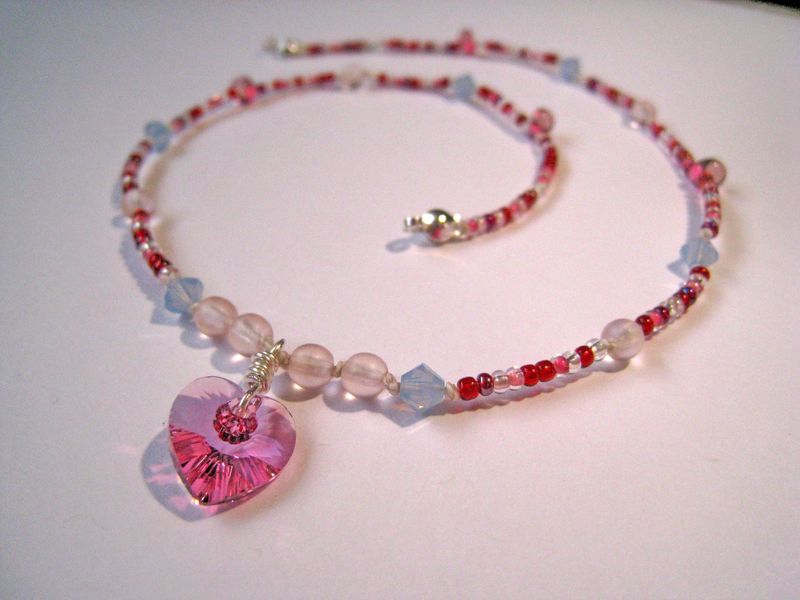 Princess Jewelry Pink Swarovski Heart Necklace Magnetic Clasp