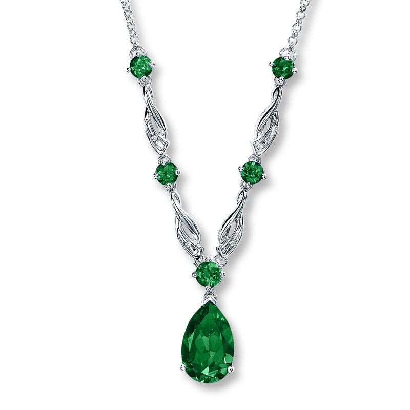 Lab Created Emerald Necklace With Diamonds Sterling Silver