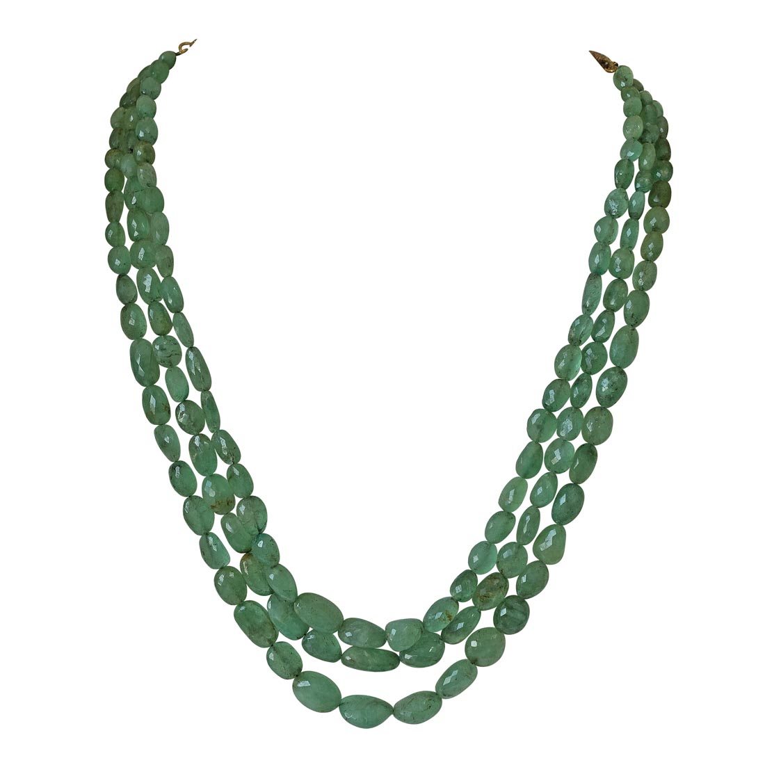 3 Line 362 73cts Real Natural Green Oval Faceted Emerald Necklace