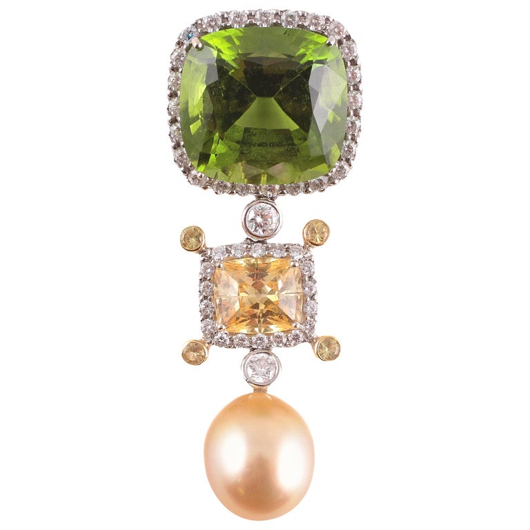 Samuel Getz Platinum Yellow Gold Peridot South Sea Pearl Diamond