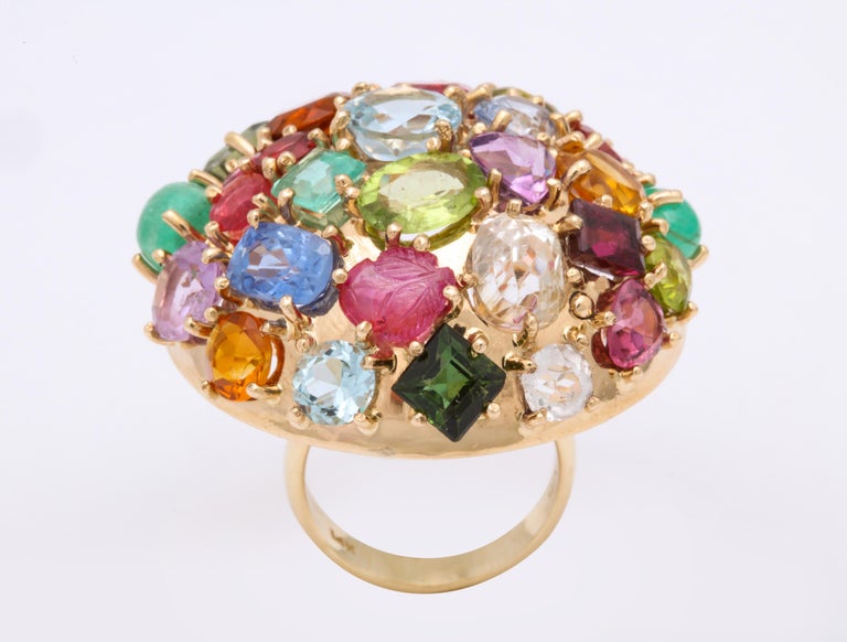 1940s Jumbo Multicolored Stones Satellite Bombe Gold Cocktail Ring