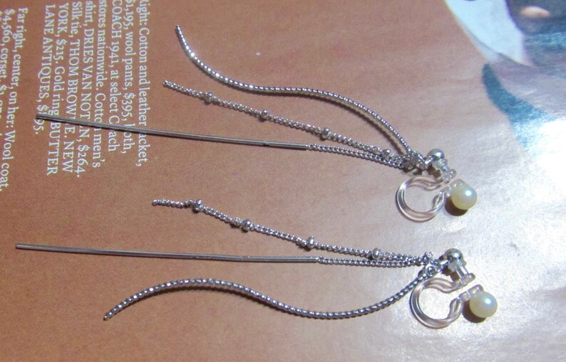 Satellite Chain Threader Clip On Earrings 24j Silver Wavy Etsy