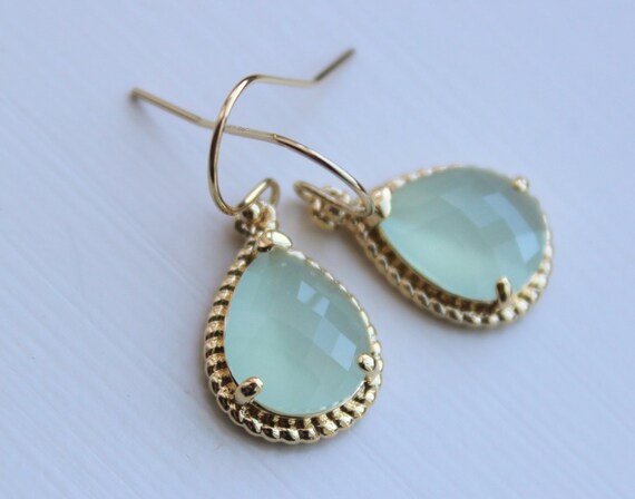 Gold Soft Mint Earrings Seafoam Green Jewelry Mint Etsy