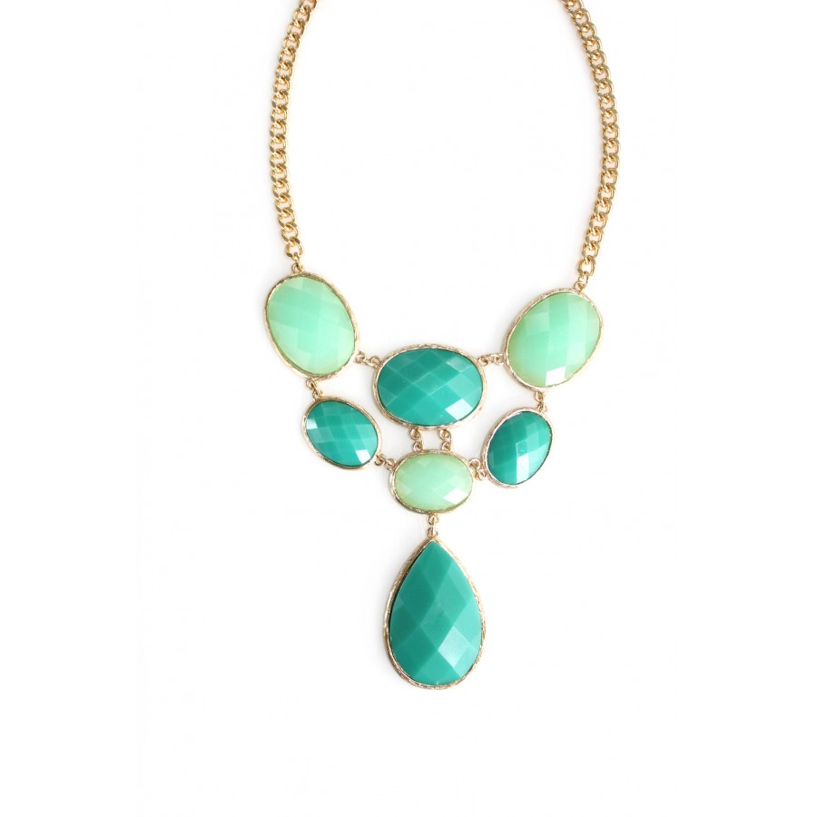 Seafoam Green Faceted Oval Teardrop Faceted Stone Statement Necklace