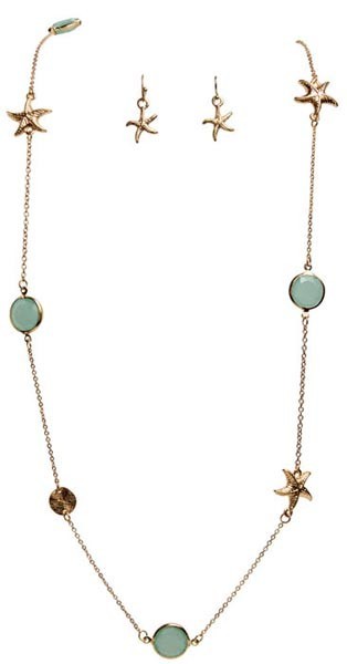 Gold Seafoam Green Color Drop Starfish Necklace Set The Silver