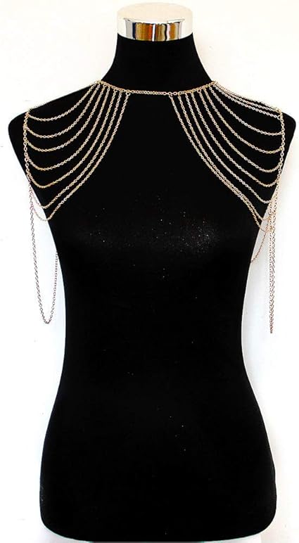 Pearl shoulder necklace bridal necklace cape wedding shoulder jewelry for bride body jewelry cape necklace large drape neckalce body chain. Siywina body chain with pearls harness multirow necklace shoulder body chain 39 out of 5 stars 81 ratings color. Body shoulder chain multilayered sexy gold tassels link harness necklace fashion jewelry belly waist bra boho hot bikini beach birthday anniversary festival gift for women girls 34 out of 5 stars 2 1299 12.