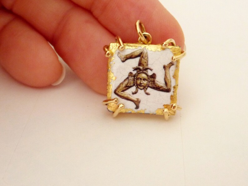 Sicilian Gold Pendant With Trinacria 18ct Solid Gold Lava Etsy