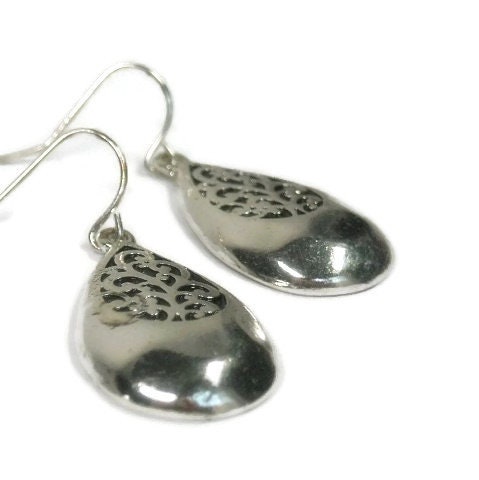 Teardrop Filigree Earrings White Brass Dangle Earrings Silver