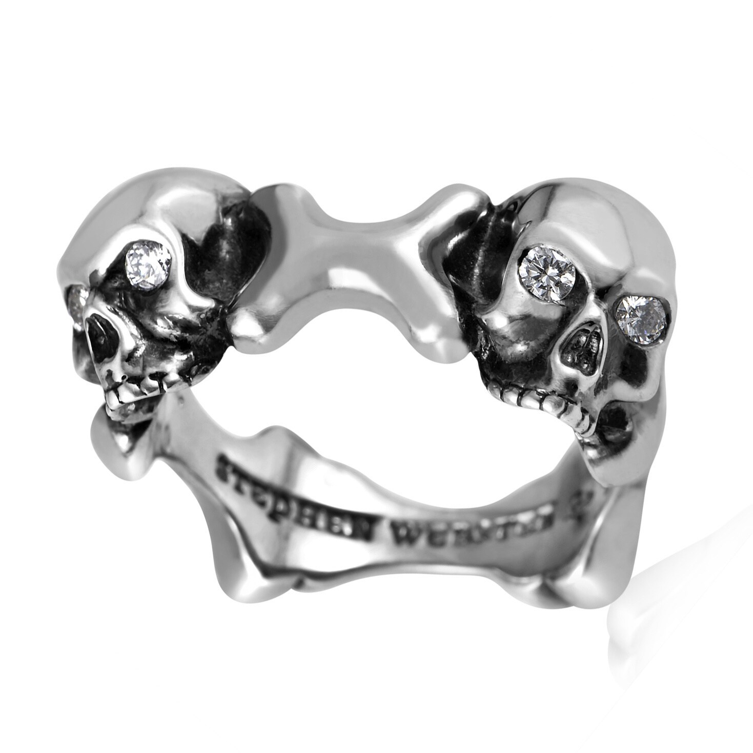 Shop Stephen Webster Sterling Silver Diamonds Skull And Bones Ring