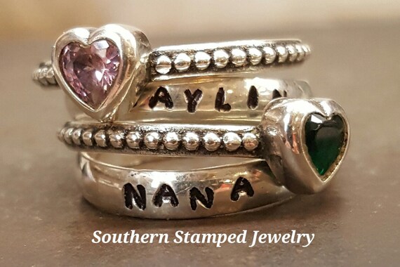 2 Custom Hand Stamped Personalized Stacking Sterling Etsy