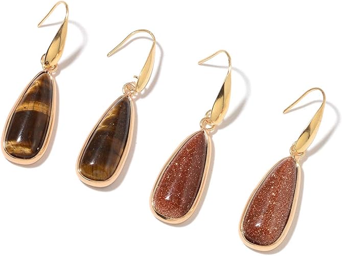 Amazon Com Stainless Steel Pear Tigers Eye Gold Sandstone Set Of