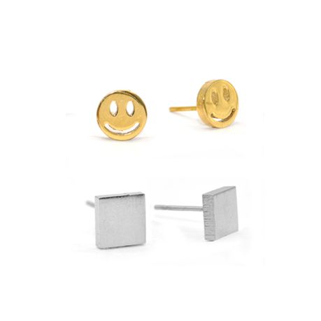 Xcalibur Mens Stainless Steel Square Smiley Face Stud Earrings