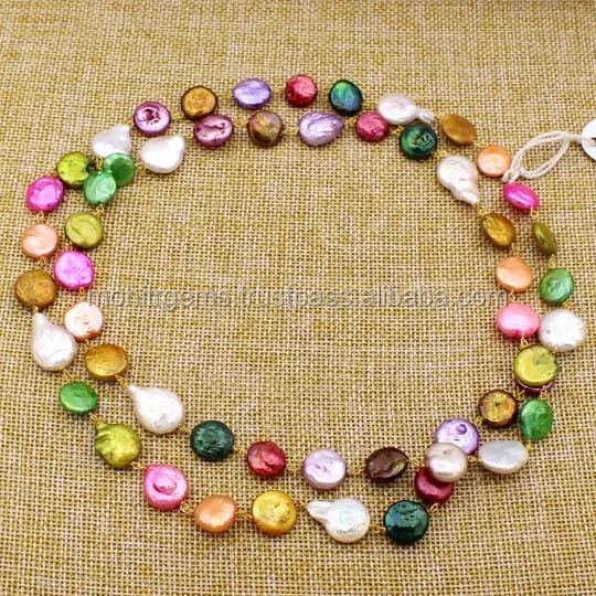 Multi Color Coin Shape Beaded 36 Inch Long Beautiful Handmade