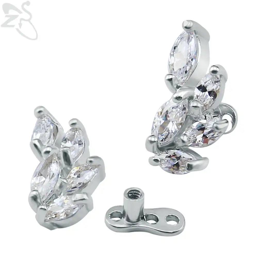 Titanium Dermal Anchor Flower Crystal Micro Dermal Piercing Anchor