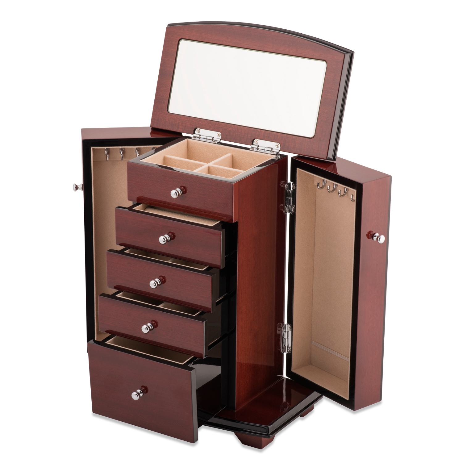 Jewelry Box Wood Treasures Storage Organizer Cabinet Upright Chest