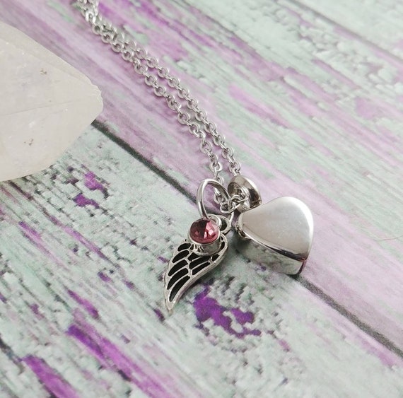 Cremation Urn Jewelry Personalized Urn Necklace Angel Wing Etsy